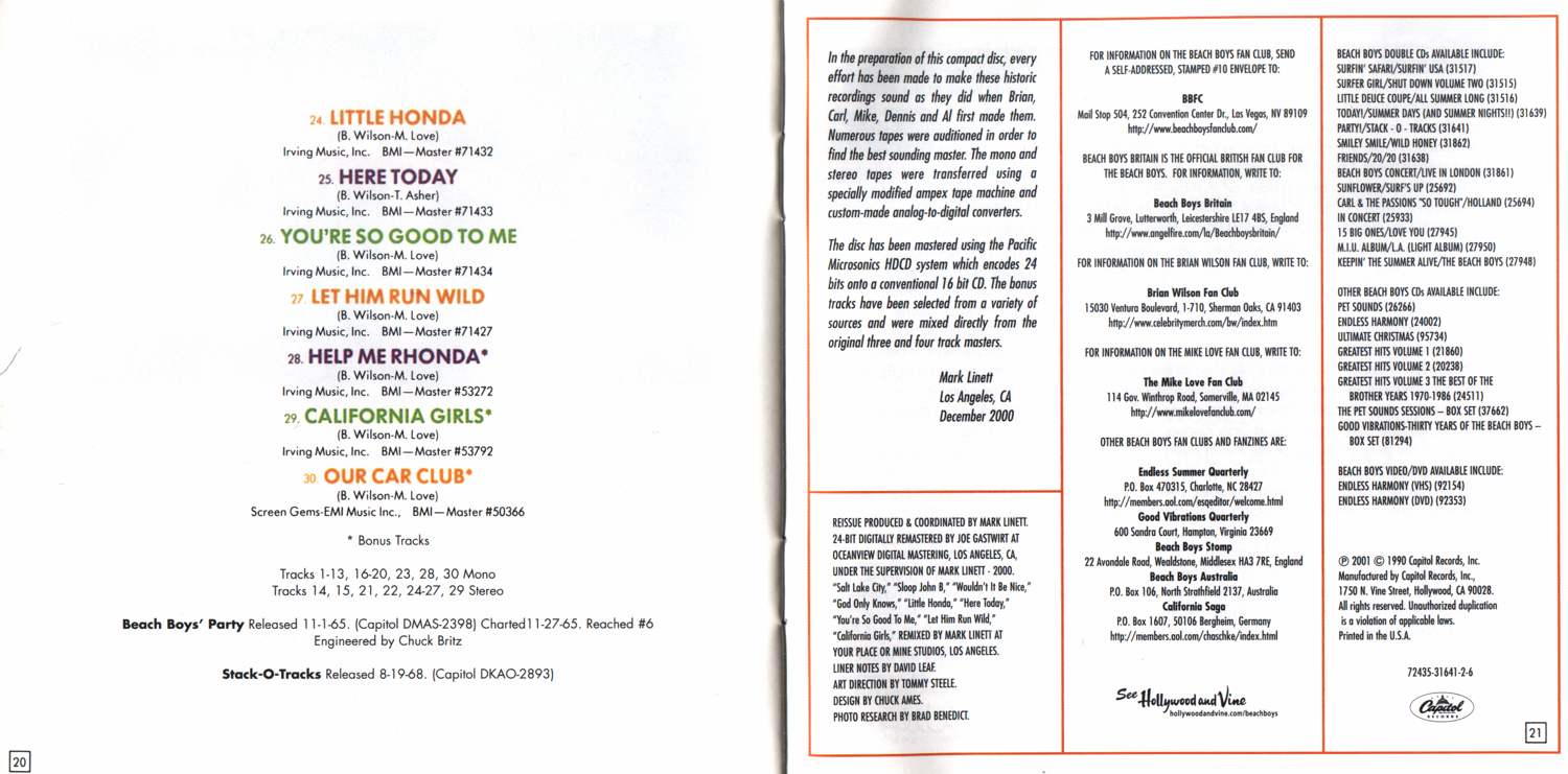 2-in-1 CD Beach Boys' Party!/Stack-O-Tracks Booklet scans - which include pages