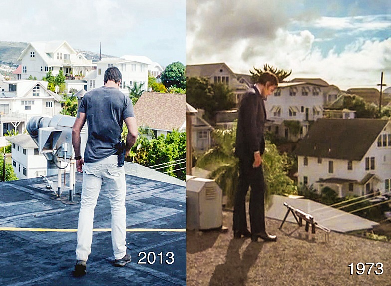 The crime of the week had to do with stolen U.S. currency plates. There were parallels between this and another old show, the third season, two-parter F.O.B. Honolulu (more about that later). A horribly mutilated body is found at the beginning of the show, and Wo Fat is nearby, disguised as a cop. Turns out that the body was that of a former Treasury Department employee named Gary Ray Percy (a.k.a. Roger Collins) who stole some currency plates with the help of a 3-D printer at his office in Washington, D.C. Percy was being tracked not only by Wo but also a Russian mobster (from Kansas City -- seriously). Percy/Collins’ arm had a tattoo removed which contained vital clues to the location of the plates.