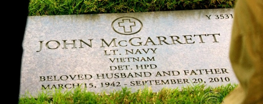 - Seven years before, Danno is taken off the Makino case by Tanaka and assigned to that of the recently-killed John McGarrett, which results in a flashback to the pilot episode when Danno first met Steve. The paperwork for McGarrett's father which Tanaka gives to Danno in 2010 says the father's birthdate is July 26, 1948, which is not the same as that shown on his tombstone in S05E05, which is March 15, 1942.