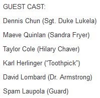 - Dennis Chun appears as Sgt. Duke Lukela, helping out with the investigation at the paddleboard race site.