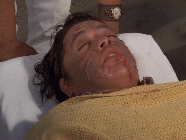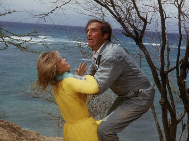 As far as Kavanaugh is concerned, it is critical that Shepard survive, because the map of the missile silos is "memorized ... all in his head." Knowing ahead of time that Dr. David Forbes (Donald Moffat), "the top neurosurgeon in Hawaii," will likely be the one to perform the very delicate operation to bring Shepard back to consciousness, Wo kidnaps Forbes' young daughter Ellen (Sherry Plep), who is taking a sailing lesson, and then gets the doctor to return home at the beckoning of his wife Janet (Linda Ryan) to face a very stern demand from Wo: "I want Mr. Shepard dead. If Mr. Shepard dies without regaining consciousness, your child will be returned to you, unharmed. On the other hand, if you don't agree with the terms, won't pay the ransom so to speak, well, then..."
