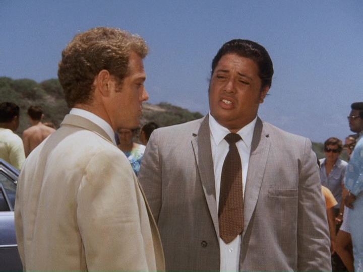 This is a leisurely-paced show, which might almost have been compressed enough to fit in a single hour. (I'm sure the new Five-Zero could have done this.) The acting is excellent throughout. Pernell Roberts is particularly good expressing the frustration he feels with Gary, who it sounds like had some episodes of troublesome behavior before: "He was doing all right, he liked it here." Some of the filming, like the finale, was done at an actual ball game in Honolulu.