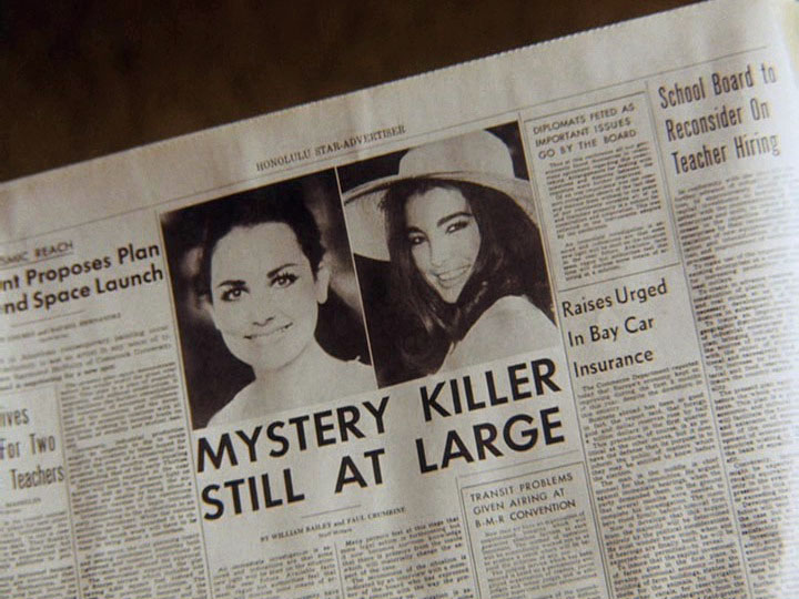 McGarrett goes to see Workman, who is very reluctant to tell him anything. He says that contrary to local rumours, he was not having his wife watched. His children are currently living with him, and he is taking great care to protect them, like hiding the day's newspaper which has a front-page story about his wife's murder. (The children are not seen in the show.)