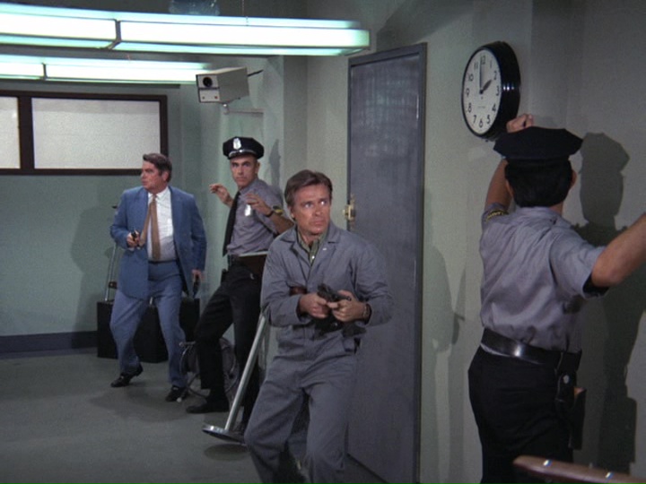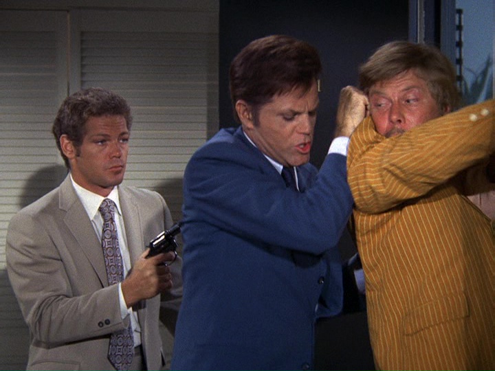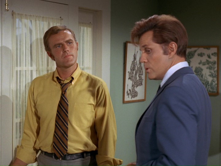 It's too bad that the IDs of the two brothers were screwed up, because otherwise this could have been a top episode, despite the contrived finale with the deactivating of the bomb. James MacArthur gives an excellent performance to rival the one he gave earlier this season in "Beautiful Screamer," especially from about 31:30 where Marty's identity and reason for the hostage taking are finally revealed. Aside from the big goof, the episode is well-written and well-acted by others as well.