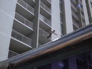 Injury: Officer Kyle is shot by Marty and falls over railing onto ground.