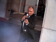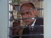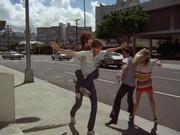 Danno is run off his feet, taking charge both in the Palace and also across the street, conferring with Olena and other cops. To me, rushing back and forth seems not like a particularly good move, because Marty could look out the window and see this activity. Danno tries to get to McGarrett's office through the air conditioning system, but it is too narrow.