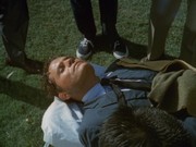 Grilled by members of Five-O, including McGarrett, Gary doesn't want to admit witnessing anything, since he was not supposed to leave his house seat, where his father was keeping his eye on him. Emily's husband, Lester Workman (Barry Atwater) is also present at the game, along with the Governor. He tells Five-O that his wife, from whom he has been legally separated for a year, approached him "lushed up" earlier and proceeded to embarrass him and publicly humiliate him as was her wont.