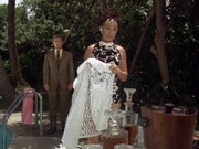 Chin Ho goes and sees Emily Workman's maid Lily Ahn (Sod Yong), who originally put the handkerchief in Emily's pocketbook. (Emily must have been getting a lot of alimony to afford this kind of help.) The maid is distraught, not wanting any more dirt to besmirch her former employer, but Chin is persistent (Kam Fong is excellent in this scene). He shows her the hanky — the original one with the script type!