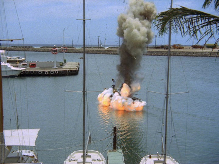Danno and Kono tail Ralston when he leaves the hospital and from a distance see him making an operator-assisted call at a public telephone. They speculate that this is long distance, but Kono investigates and finds there is no record of this at the phone company. The clever McGarrett then suggests that the call was to "a mobile unit or a marine call to a boat."
