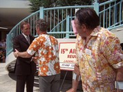 The assassination has been orchestrated by Wo Fat, who gets his stooge Chung (Danny Kamekona) to kill Shepard using a high-powered rifle from a room up in the Hilton Hotel Rainbow Tower. Shepard had arrived at Honolulu Airport and is ferried by helicopter to the Ala Wai Heliport near the Tower. This whole procedure seems very peculiar, however. Why didn't they just pick up Shepard at the airport and take him to the intelligence office, wherever that might be? Of course, then the show would likely be a lot shorter.