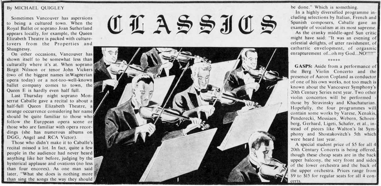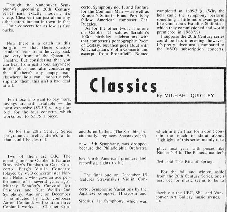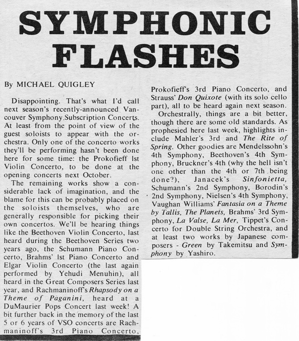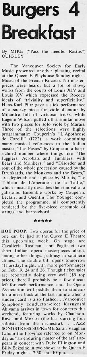 Vancouver Early Music Society; VOA/VSO hype; Sarah Vaughan hype |