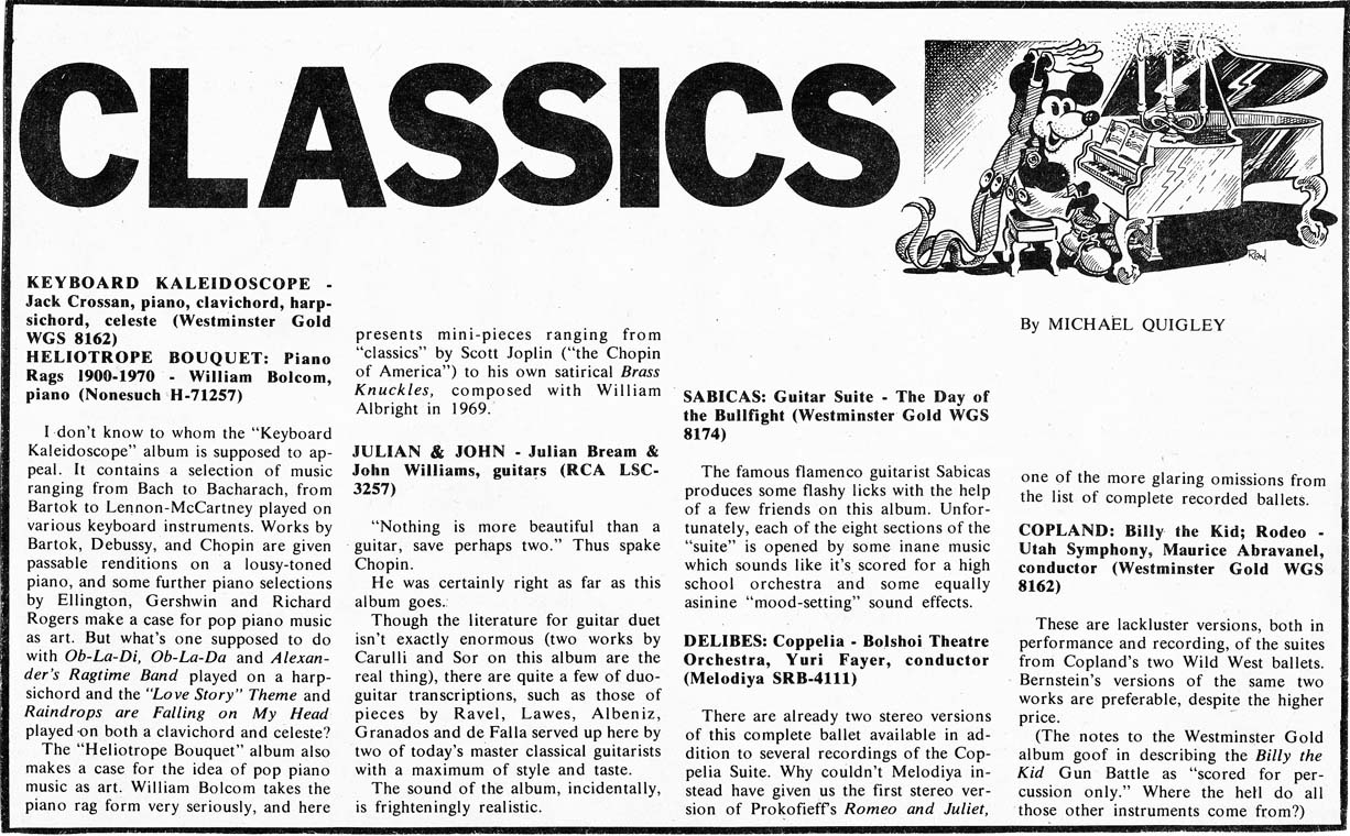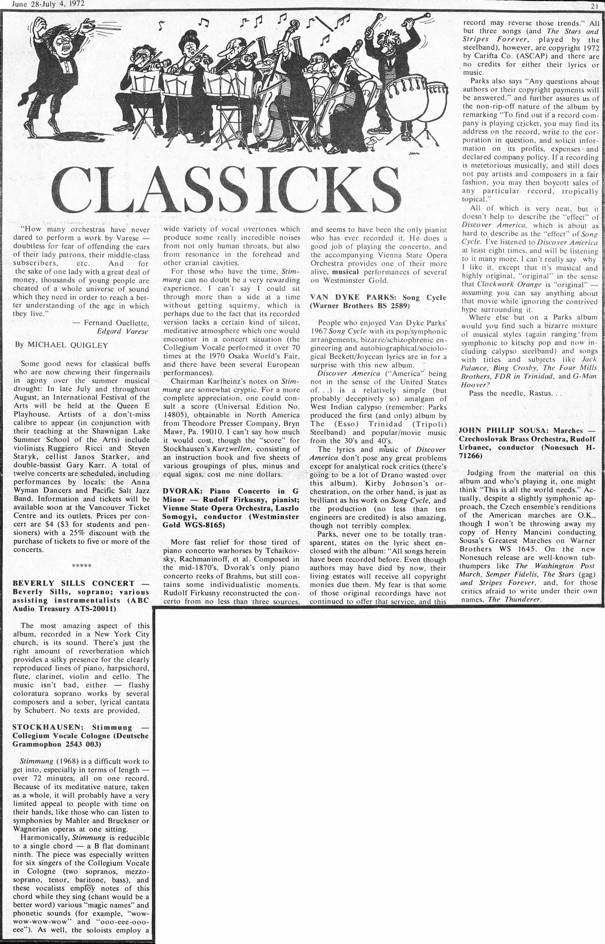 reviews: Sills, Stockhausen, Van Dyke Parks, Dvorak, Sousa (single issue) |