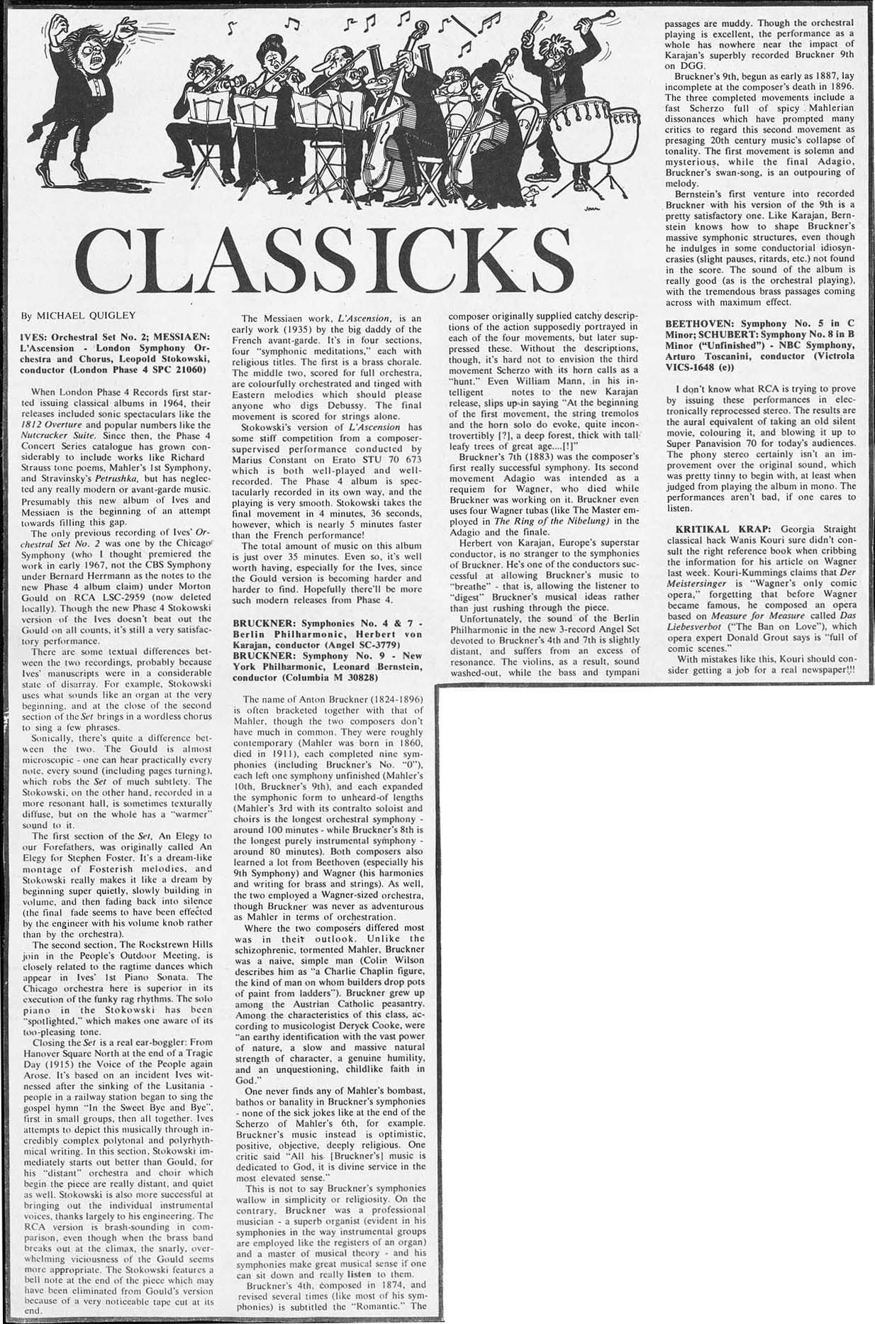 Bruckner, Beethoven; Kouri abused |