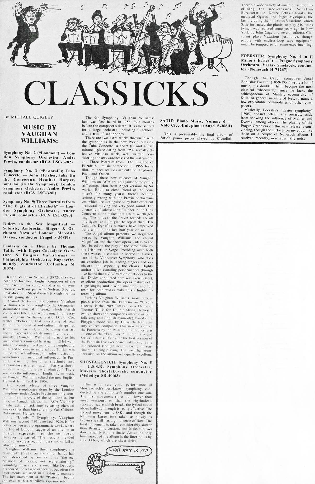 Williams, Shostakovich, Satie, Foerster |