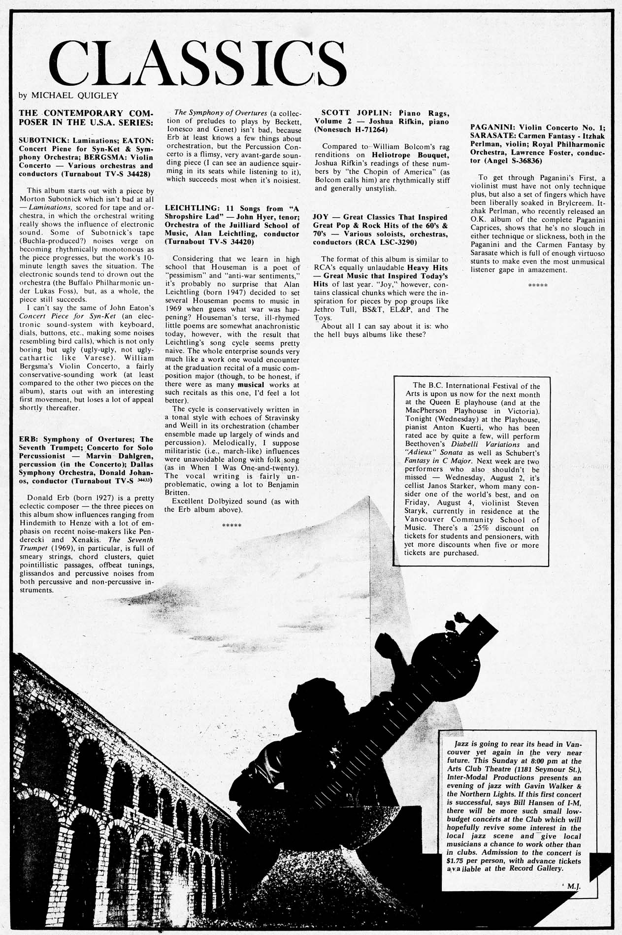 Festival hype; LP review - Ives; List of contemporary composers |