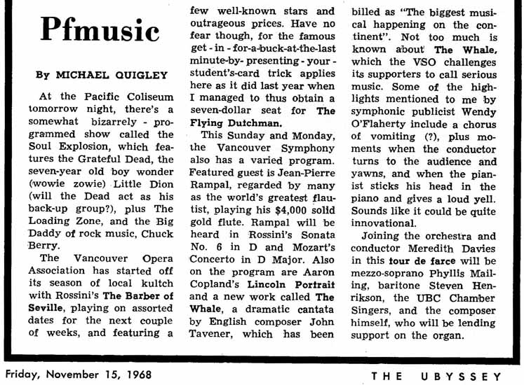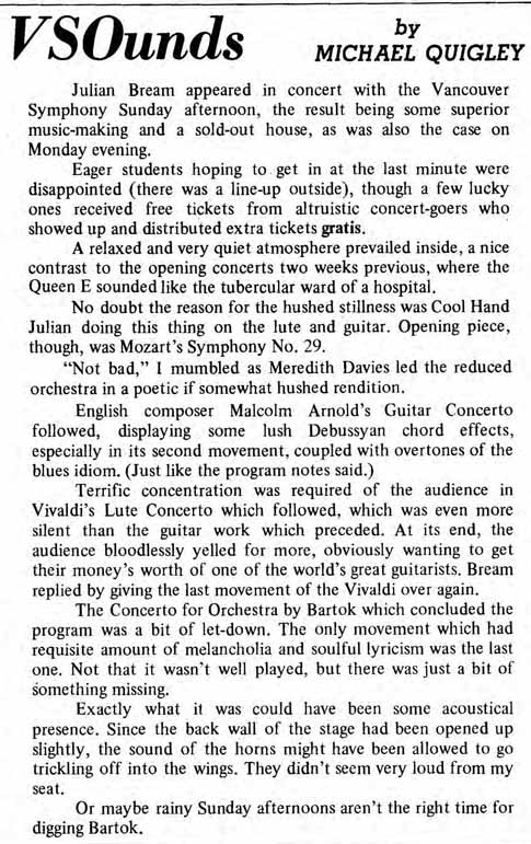 speculation; VSO concert review - Bernardi (as Mark Jacques) |
